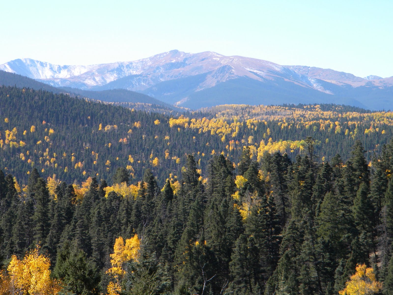 Our plan for the day was to do a little hiking, and also spend time in the car driving around and looking at/taking pictures of the fall colors. Using the information and maps given to us by the lodge owners, we drove to the Rio Grande Gorge recreation area. This area had many (OPEN!!!) campsites and numerous hiking trails. We chose one based on a map that would allow us to hike the bottom of the gorge, which looked like a tiny version of the Grand Canyon, and was one of the filming sites of Terminator: Salvation. The hiking expedition took a turn for the worst, however, when Cari saw that the trail was about 2 feet wide with a couple hundred feet vertical drop and no railing. I was ready to go, but couldn't get her to come (and I can't blame her, especially considering her fear of heights). So, we drove around for a while and headed out on the second part of our day, which was the Enchanted Circle.